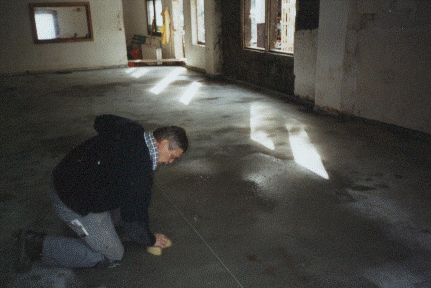 Von der Firma Otto Näke werden auf dem neuen Estrich von der Firma Koebau wieder Feinsteinzeug-Fliesen verlegt. |